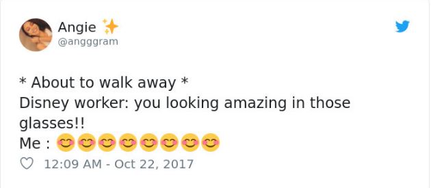22.「(正準備離去)迪士尼員工:你戴這副眼鏡很好看!!」可想想像這位網友心情會有多好!