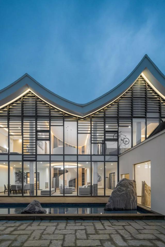 我保留了老宅的黑色、白色和木色。建築的最高點,有10.7米。建築的輪廓,如果從天上俯瞰,就像三本打開的書。如果從正面看,它有點像人手的形狀,有高低,有起伏。