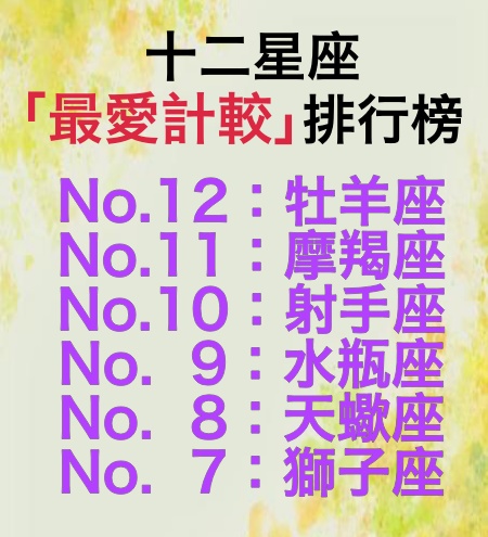 生活中的很多人之所以過得很壓抑,就是計較的太多。那麼今天就讓我們一起來看看,十二星座的愛計較指數有多高呢?