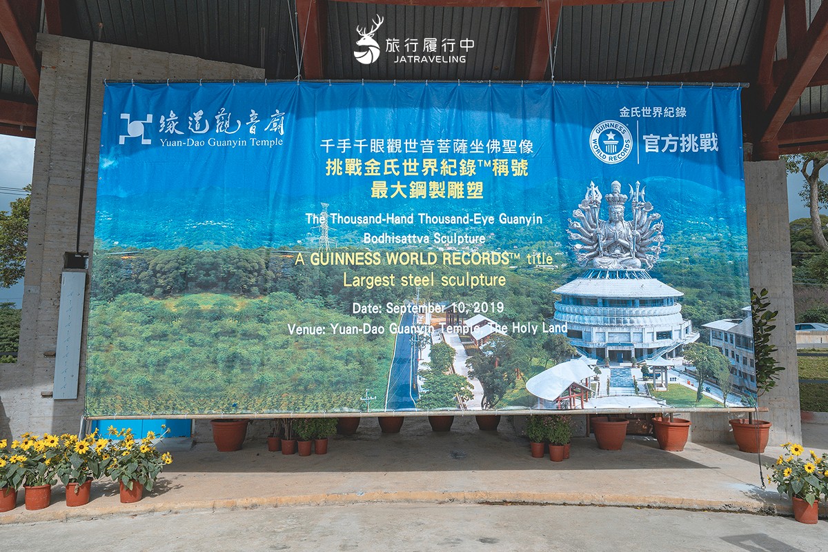 根據《聯合新聞網》報導,這座倚靠於山間的「千手千眼觀世音菩薩坐佛聖像」是由淡水緣道觀音廟所建立的,其中千手造型的左右兩側,共設計了36臂的「正法明佛手」,並各持著「不思議能用法寶」以及「千手法輪盤」,底下還有一個超巨大的蓮花座,光是從遠處眺望,就能讓人感受到無比壯觀的氣勢,更不用說祂除了獲得金氏世界紀錄「最大鋼製雕塑」認證外,還拿下了多達154項的國際藝術競賽殊榮。