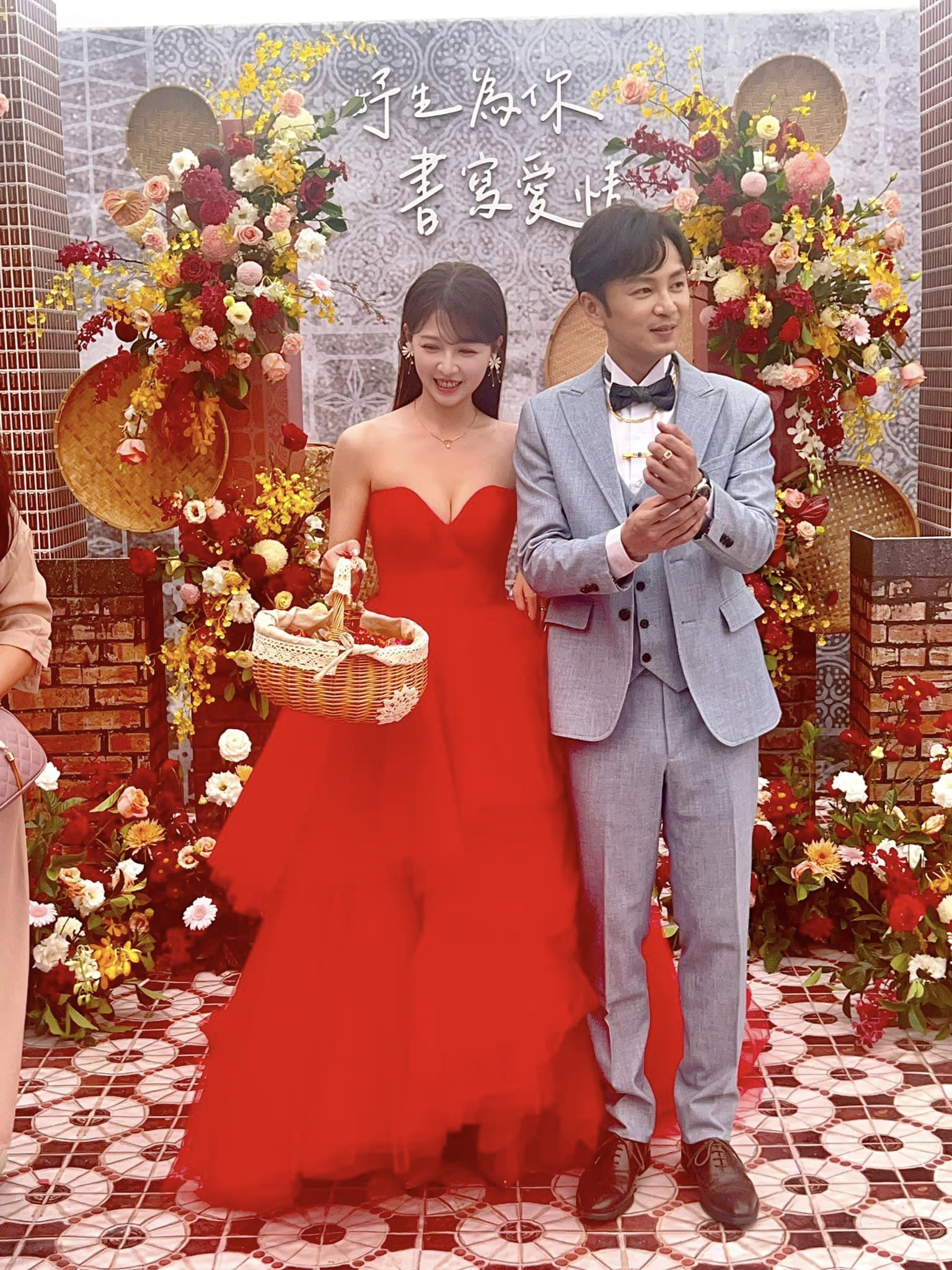 本土劇夫妻完成訂婚!新娘戰袍「深V火辣登場」大辦流水席 小倆口「現場甜蜜互動」太閃了
