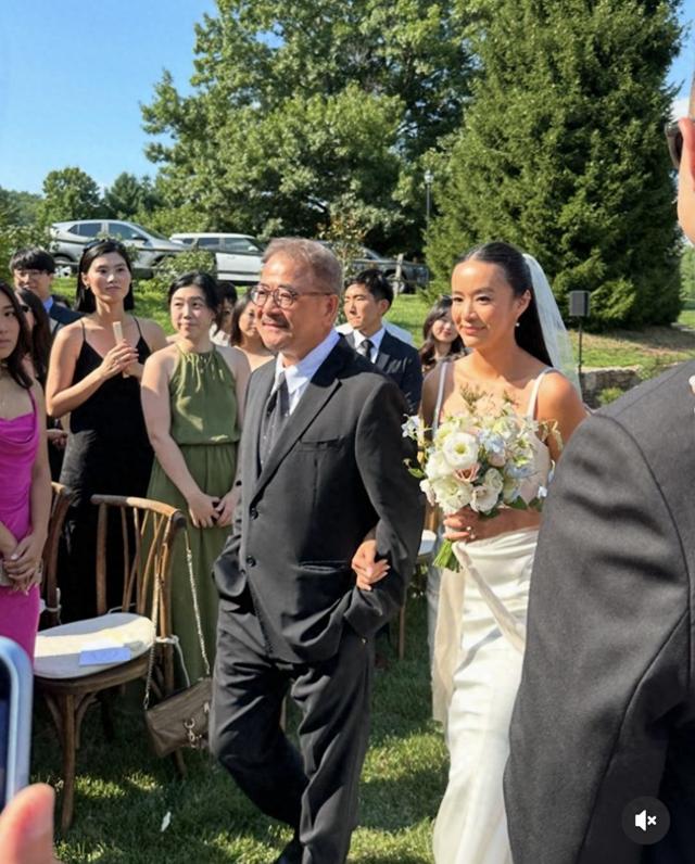 毛舜筠頗為感慨地留言表示,女兒在充滿愛的保護與包圍下,展開了人生新的一頁!除了感恩還是感恩。言簡意賅,卻飽含了濃厚的感情與對女兒的祝福。從毛舜筠曬出的照片來看,婚禮是在室外舉辦的,環境清幽,有綠樹草地環繞,而當天天公作美,更是錦上添花。區令山穿上了白色的婚紗,手捧了一束白花,婚紗不奢華但是很莊重,只見她挽著父親區丁平的手步入婚禮現場,全場賓客起立鼓掌、歡呼,現場充滿了愛。