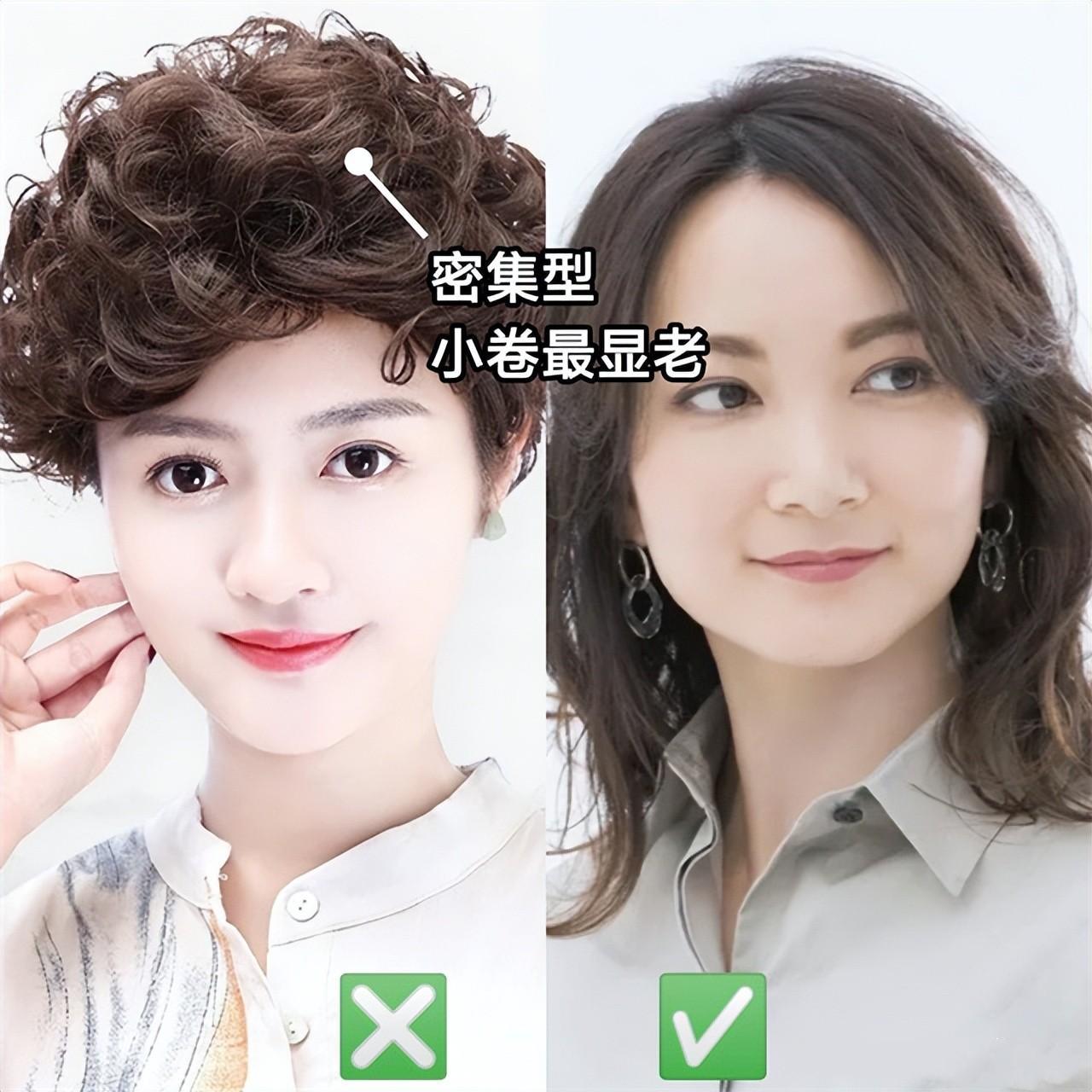 ❌過於密集的小捲髮樣式另一常見誤區是選擇過於密集的小捲髮。雖然能假象增加髮量,但緊密小卷易讓人看起來更成熟甚至顯老。此外,這種髮型讓頭部顯得沉重,缺乏靈動感,且難以維護,易因濕氣或天氣變得凌亂。