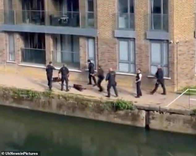 Here's another angle of the dog shooting and man tasing on 07.05.23 #metpolice #police #shooting #dogs #limehouse #brutality #incompetence #london – distressful footage pic.twitter.com/MMmrUgf9TE
