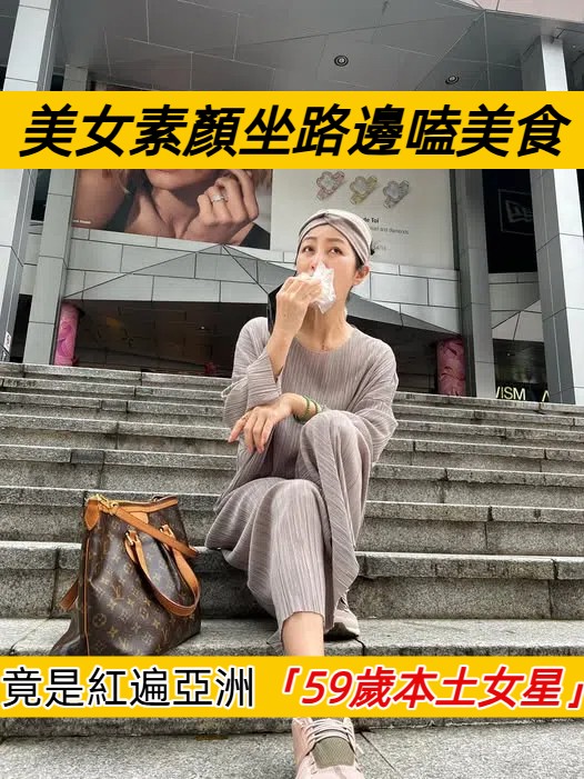 照片中的方文琳,身穿藕色套裝,頭巾隨意綁著長髮,即使沒有化妝,肌膚狀態依舊完美,讓人難以相信她的真實年齡。她幽默自嘲:「昔日炸紅卻不顧形象坐在路邊階梯吃東西」,網友則紛紛讚美:「自然就是美」、「連吃東西都這麼有氣質」。