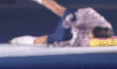 變身後的梅德韋傑娃,在場上連續做出凌空跳躍和轉圈動作,觀眾們都看呆了~全場掌聲都沒停過。
