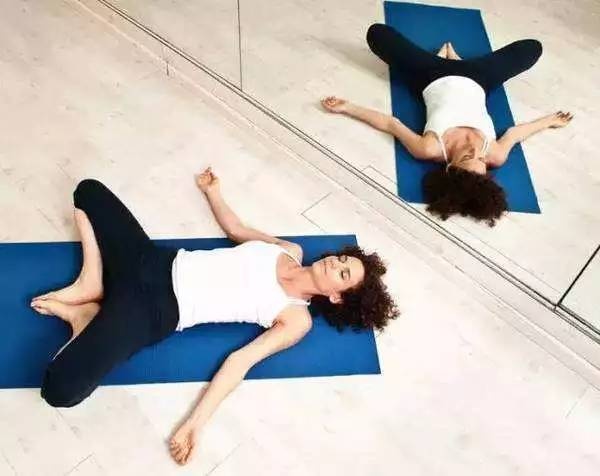 做法:仰臥,彎曲兩膝向外,腳底相對,雙腿自然打開,
