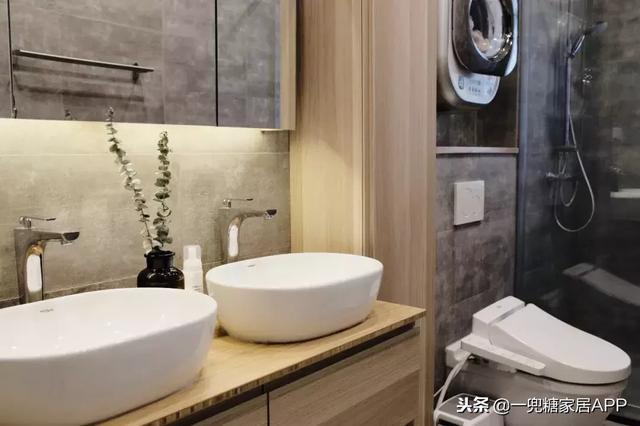 客衛空間夠用,做了乾濕分離。起初想為兩個寶寶做一套屬於她倆身高的迷你雙人衛生間。遭到家人反對,想到偶爾老人也會來,最終為寶寶選了小凳子和寶寶馬桶圈。