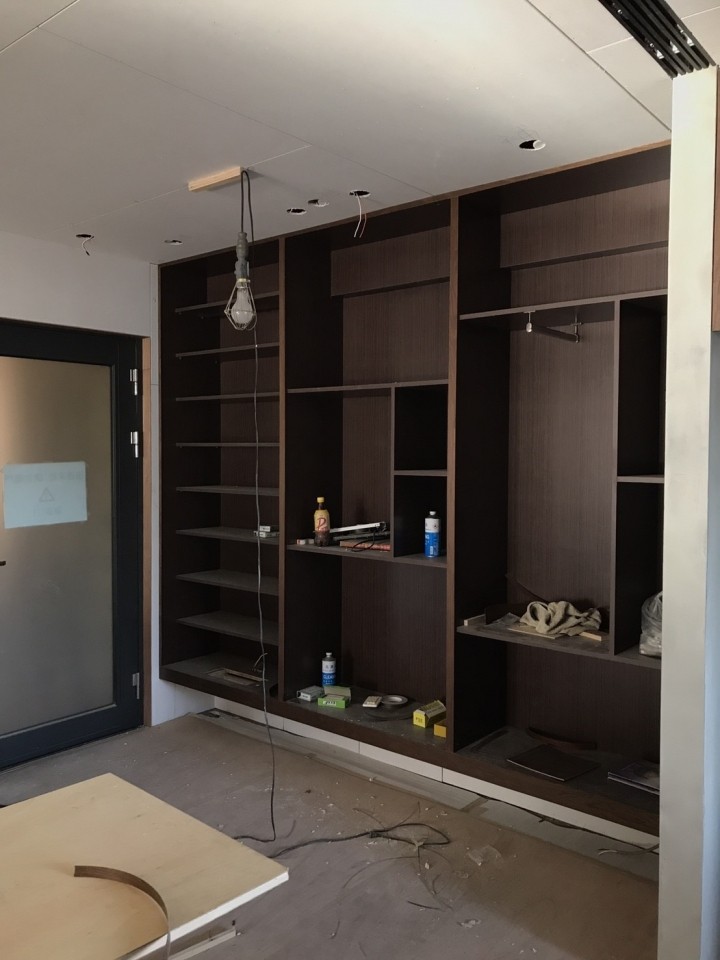 木作部分完工後,天花板、櫃子和電視牆的矽酸鈣板採用的是ASANO日本淺野,品質也是有保證!