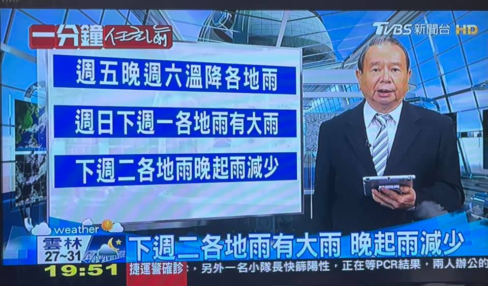 以前看氣象都只看他播報,好不捨他要退休了…最後也謝謝任大哥陪伴我們這麼多年!