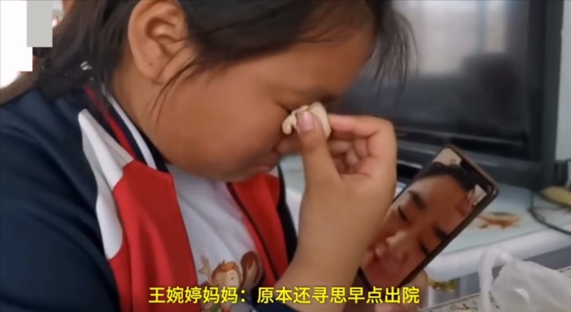 其實,王婉婷媽媽本想六一時出院回家陪女兒過節,可終究還是被耽擱了,不得已與女兒視頻通話表示,「我也沒回去……」
