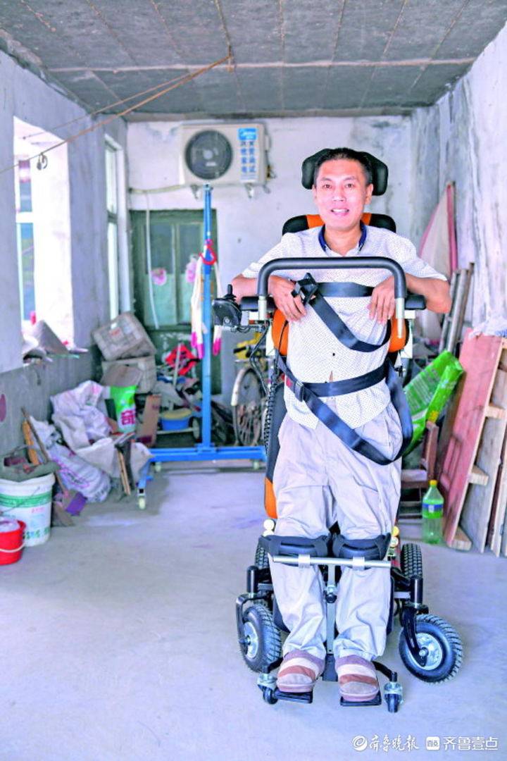 「可以站起來了,這是受傷近三年來第一次站起來。」魯守波藉助輪椅站起來時,這個漢子竟然激動得流下了眼淚。由於近三年未站,第一次站立他還有些頭暈。但是他也抑制不住興奮,熟練地操作著輪椅,第一次自己走出家門,和鄰居們打招呼。