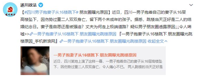 結婚紀念日當天,丈夫抱著自己的妻子,從16層高樓一躍而下。