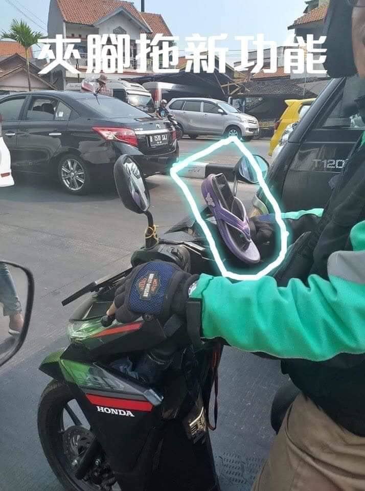 夾腳拖最新功能曝光,引來網友熱烈回應:「傳統與科技的結合...」、「有自己的味道!」、「使用正確!」、「生活智慧王欸。」、「夾腳拖斜槓新工作?」、「還好不是廣志的。」但也有人不建議:「煞車就噴裝備了...」、「一摔車就飛出去了。」、「油門加速撞到坑洞就飛起來。」、「它是真手機架,只是做成涼鞋樣式。」