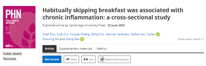 C-反應蛋白是反應炎症水平的指標,說明習慣不吃早餐可能與全身慢性炎症有關。