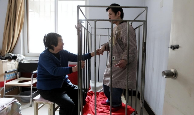 彭偉慶的籠子就放在彭外妹夫婦的卧室裡,每天早上天沒亮,他倆就要起床照顧彭偉慶。