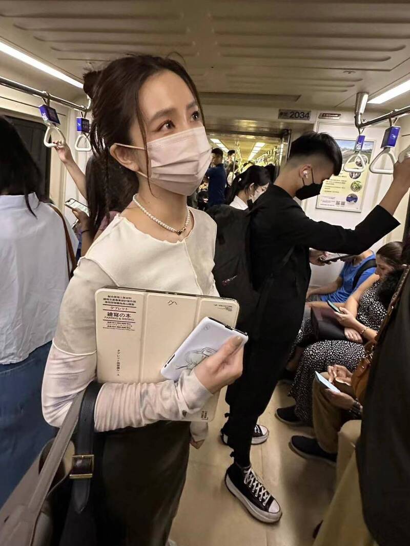 日前一張照片就在網路上流傳,只見畫面是日常的捷運車廂,一位身材纖細的女性正抓著把手搭車,雖然戴著口罩但仍然可以看出她的五官非常精緻甜美,纖細美腿更是超級有魅力的啊~